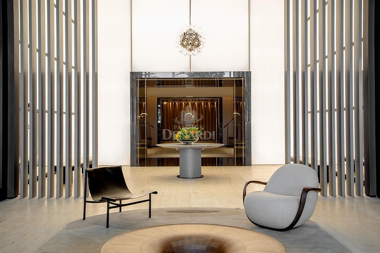 • Com arquitetura escandinava no hall de entrada, que remete também ao nome do edifício, o visual da decoração logo na entrada é clean e aconchegante, como o clima da vida na praia.