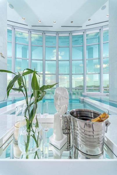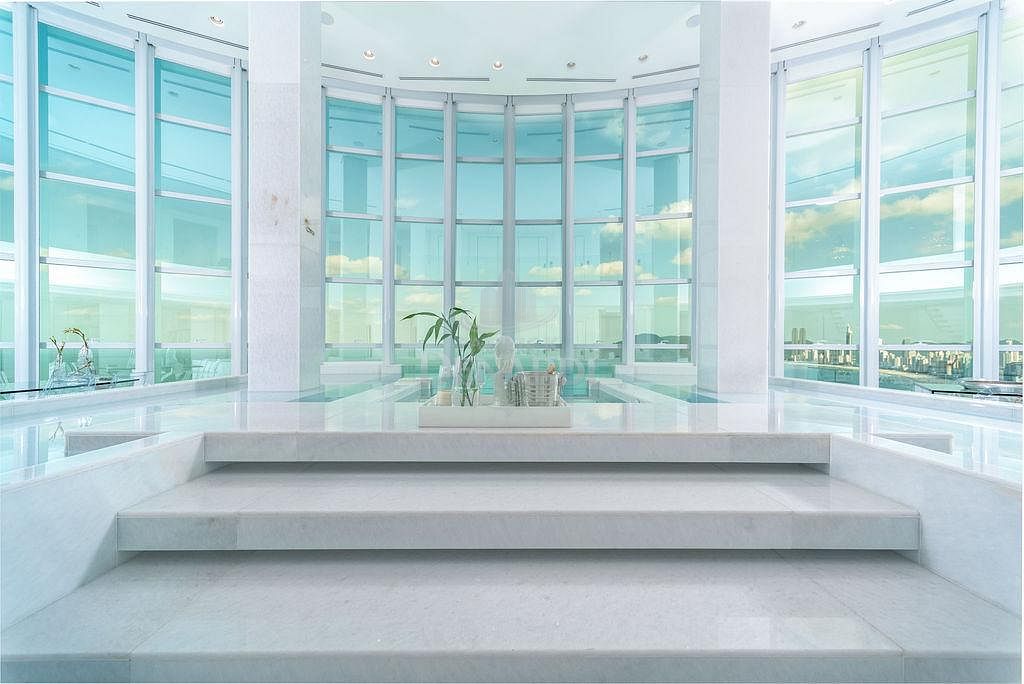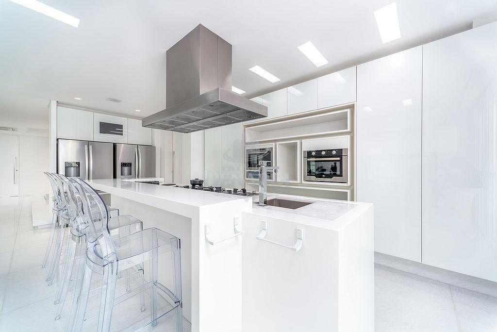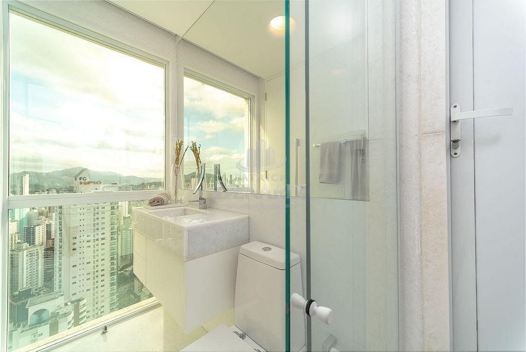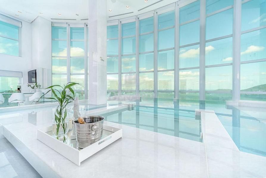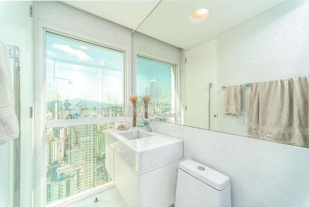 • A cobertura ainda possui persianas automatizadas, acesso do elevador social aos 2 pavimentos e portas de acesso blindadas, além de piso em mármore Thassos - um mármore branco puro extraído da Grécia, sendo o material de tonalidade branca mais claro que a Natureza oferece. Andar alto, 40º pavimento, fino acabamento e área de lazer completa, em plena Avenida Atlântica, na Praia Central de Balneário Camboriú.