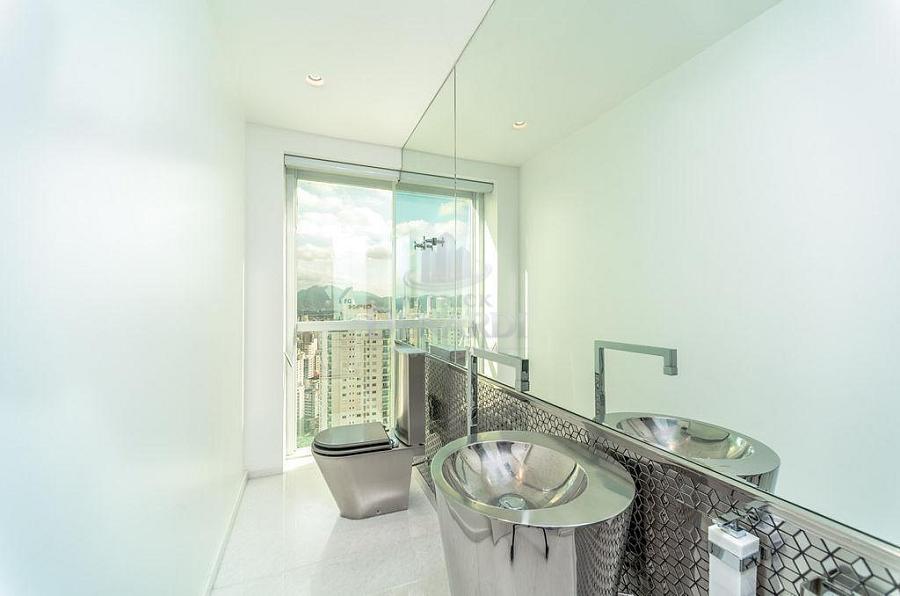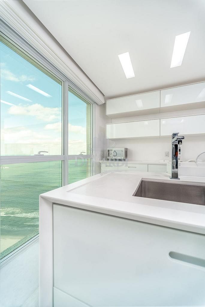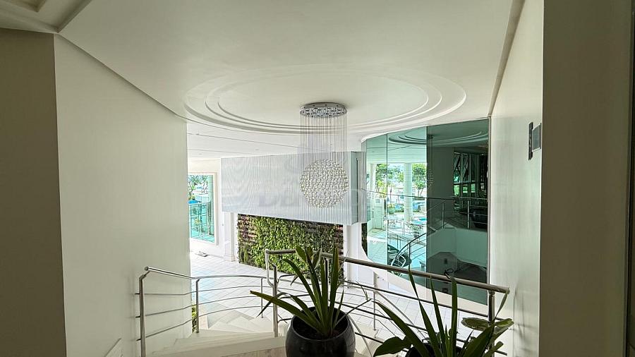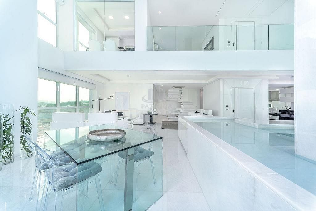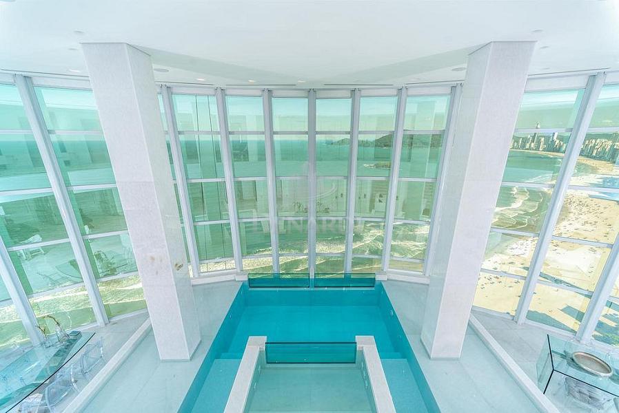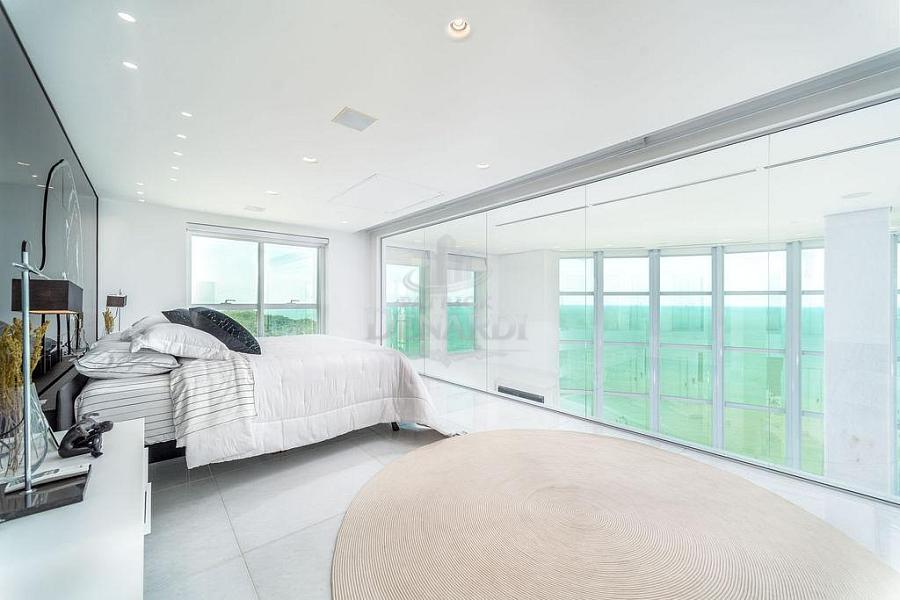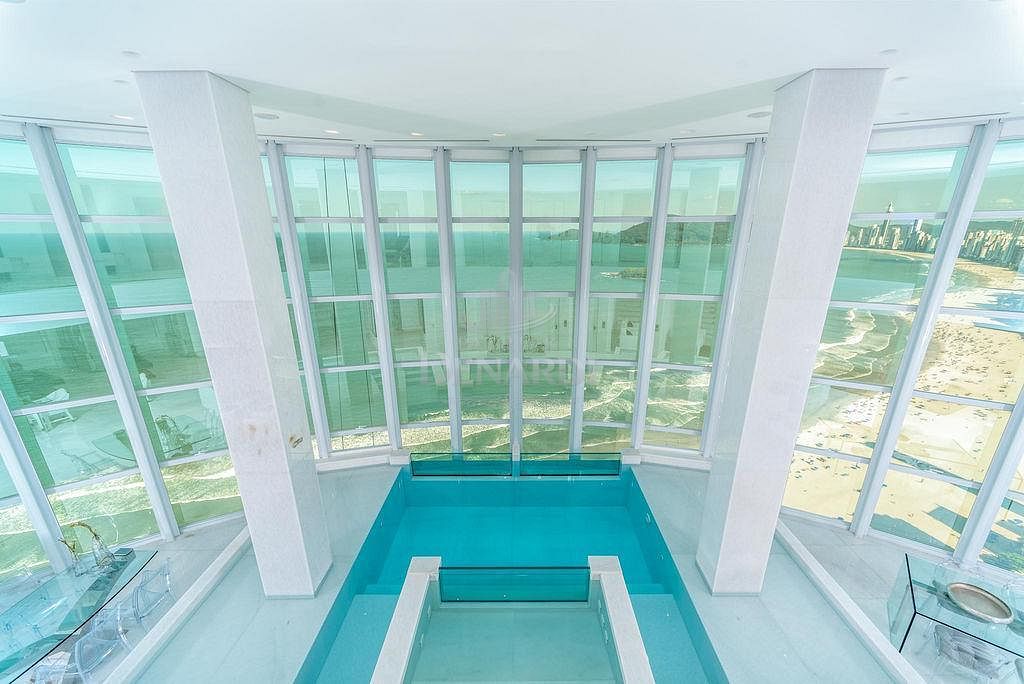 • Cobertura Duplex frente mar com 476 m² privativos, piscina privativa, pé direito duplo inteiramente em pele de vidro, living para 4 ambientes, área gourmet com churrasqueira, 5 suítes (Otimizado para 3 suites + 1 home office) contendo 1 master com sala de banho, hidromassagem e closet, home office, dependência de serviço, 6 vagas de garagem.