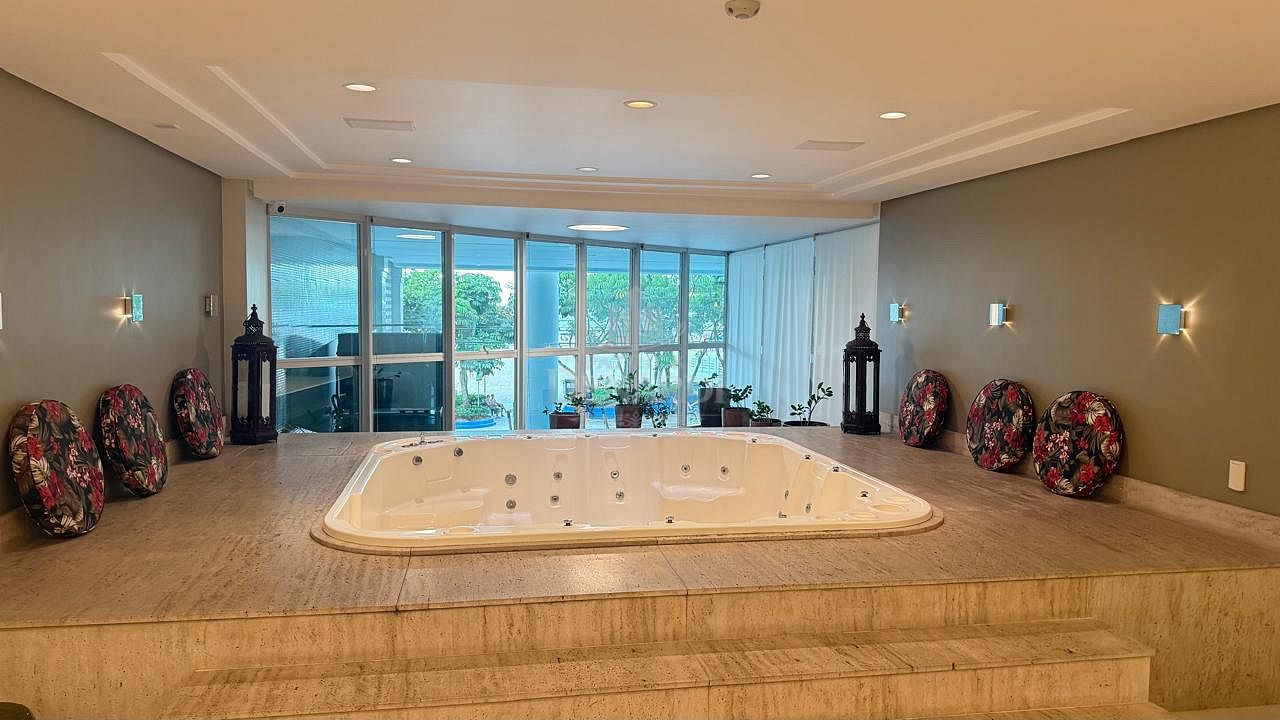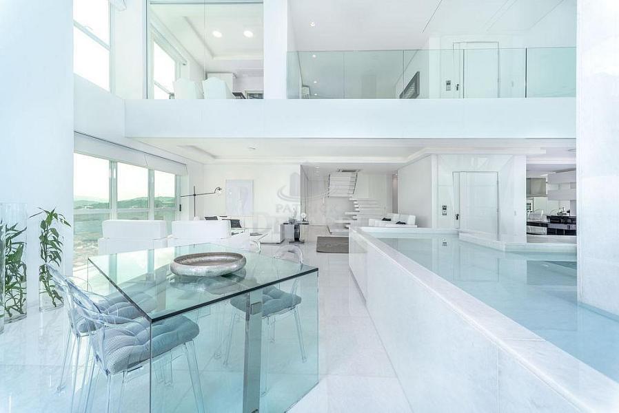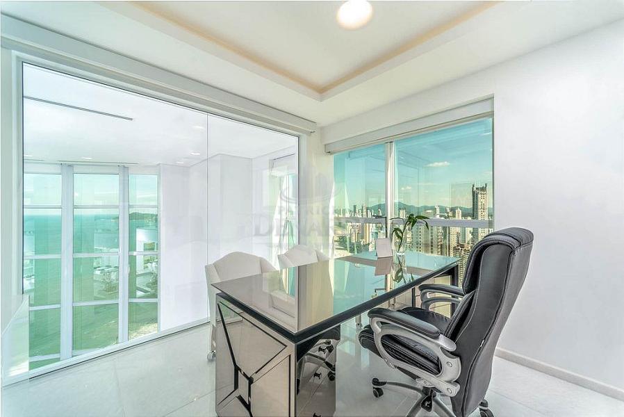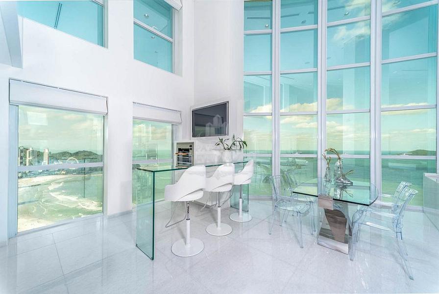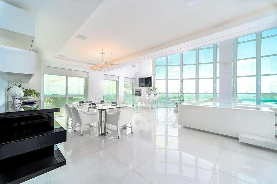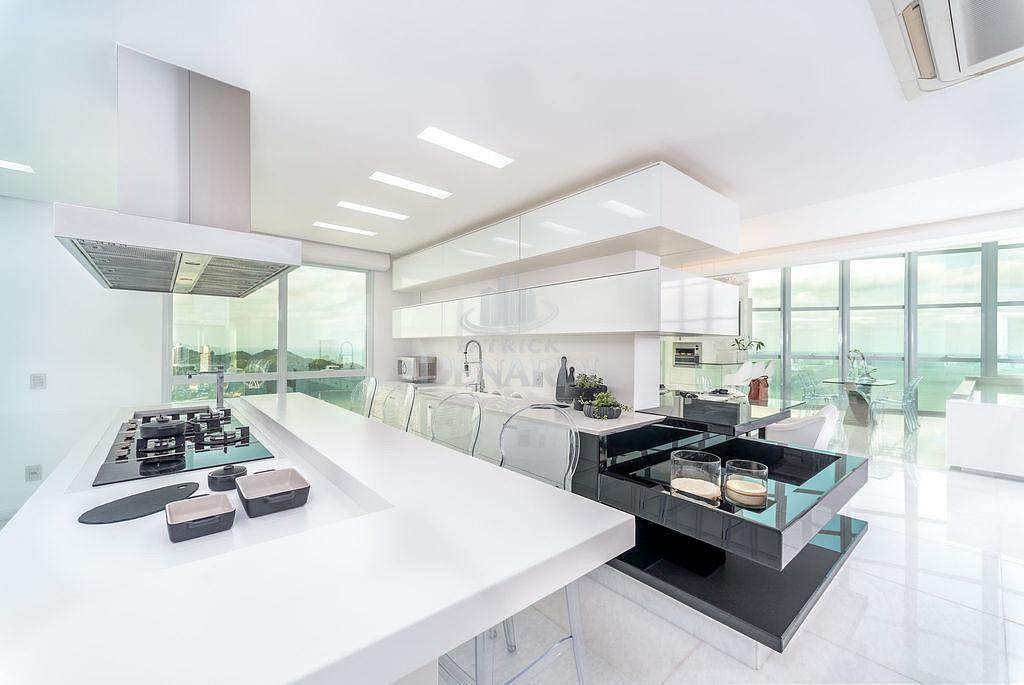 • Cobertura Duplex frente mar com 476 m² privativos, piscina privativa, pé direito duplo inteiramente em pele de vidro, living para 4 ambientes, área gourmet com churrasqueira, 5 suítes (Otimizado para 3 suites + 1 home office) contendo 1 master com sala de banho, hidromassagem e closet, home office, dependência de serviço, 6 vagas de garagem.