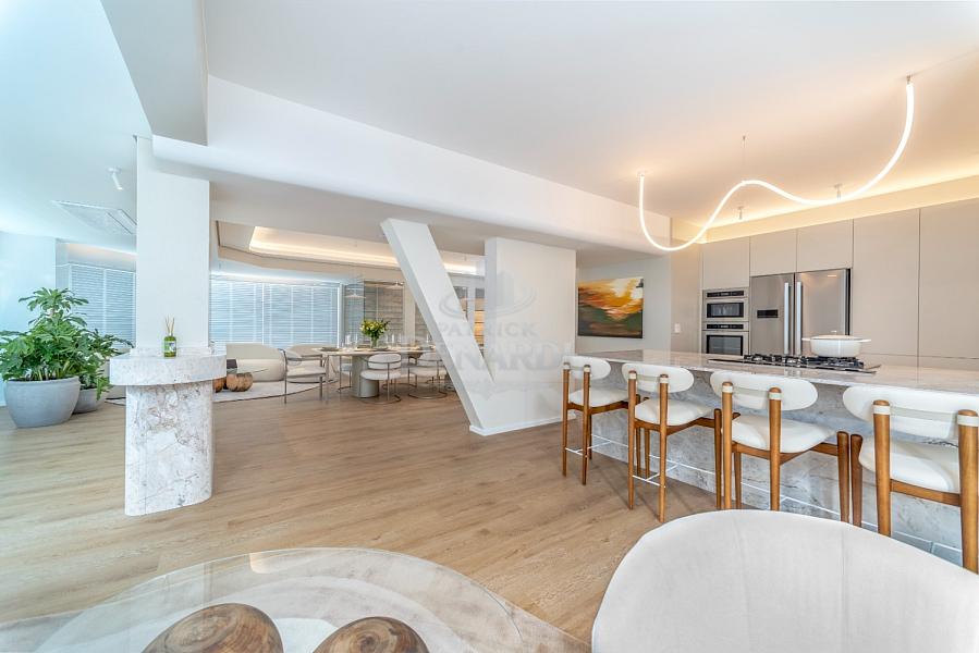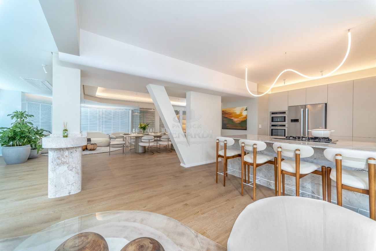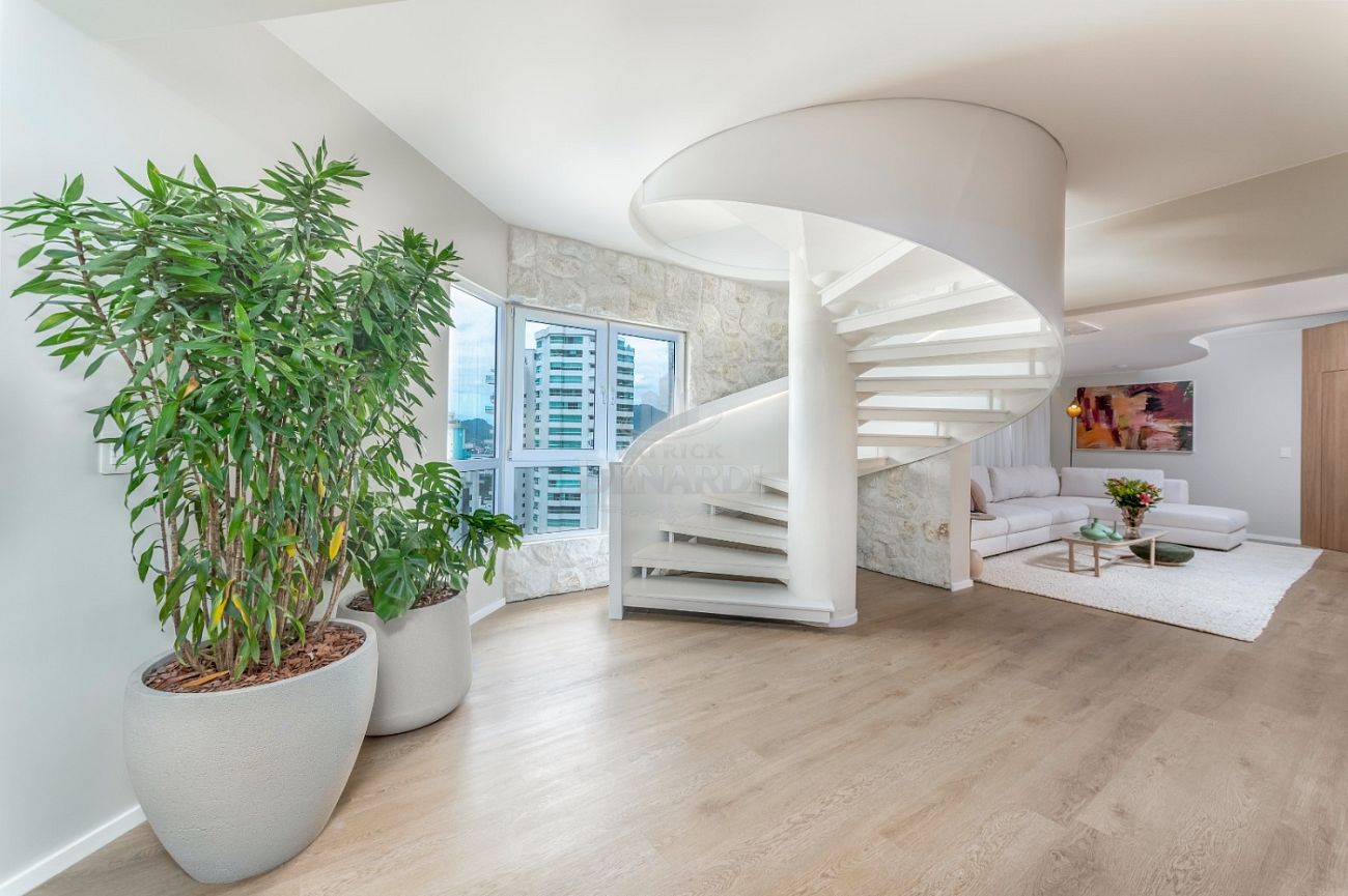 • Essa é uma oportunidade única pra quem quer morar com estilo, conforto e espaço de sobra em uma localização bem estrategica da cidade, Essa cobertura duplex de frente para o mar no Edifício Theiss Heim, na Barra Sul de Balneário Camboriú, tem 421 m² de área privativa, 5 suítes amplas (sendo uma master com vista deslumbrante), 7 banheiros, dependência de empregada e 4 vagas de garagem.